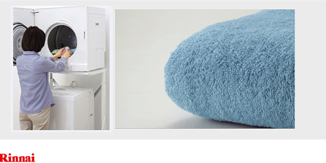ガスの衣類乾燥機はとてもパワフル!電気式の約1/3 の時間でフッカフカの気持ちの良い仕上がりに。